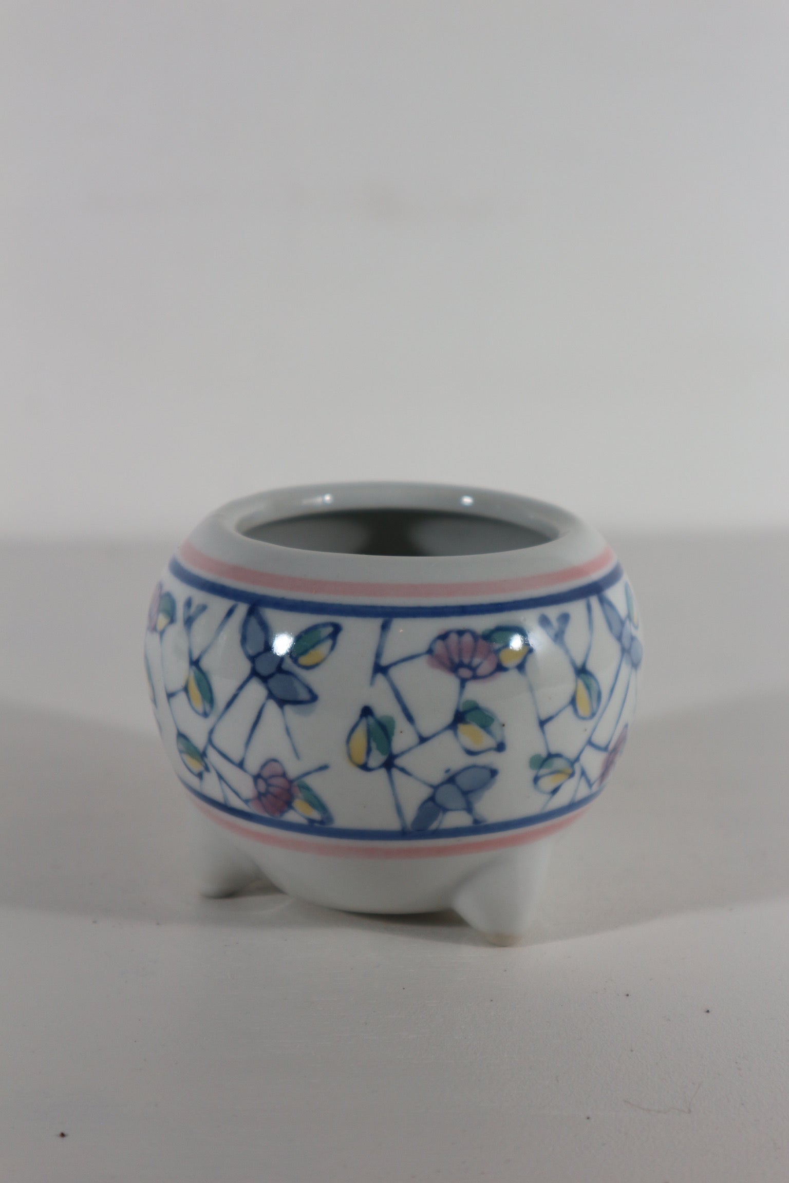 Mini bloempotje op pootjes, met pastel kleurige bloemetjes