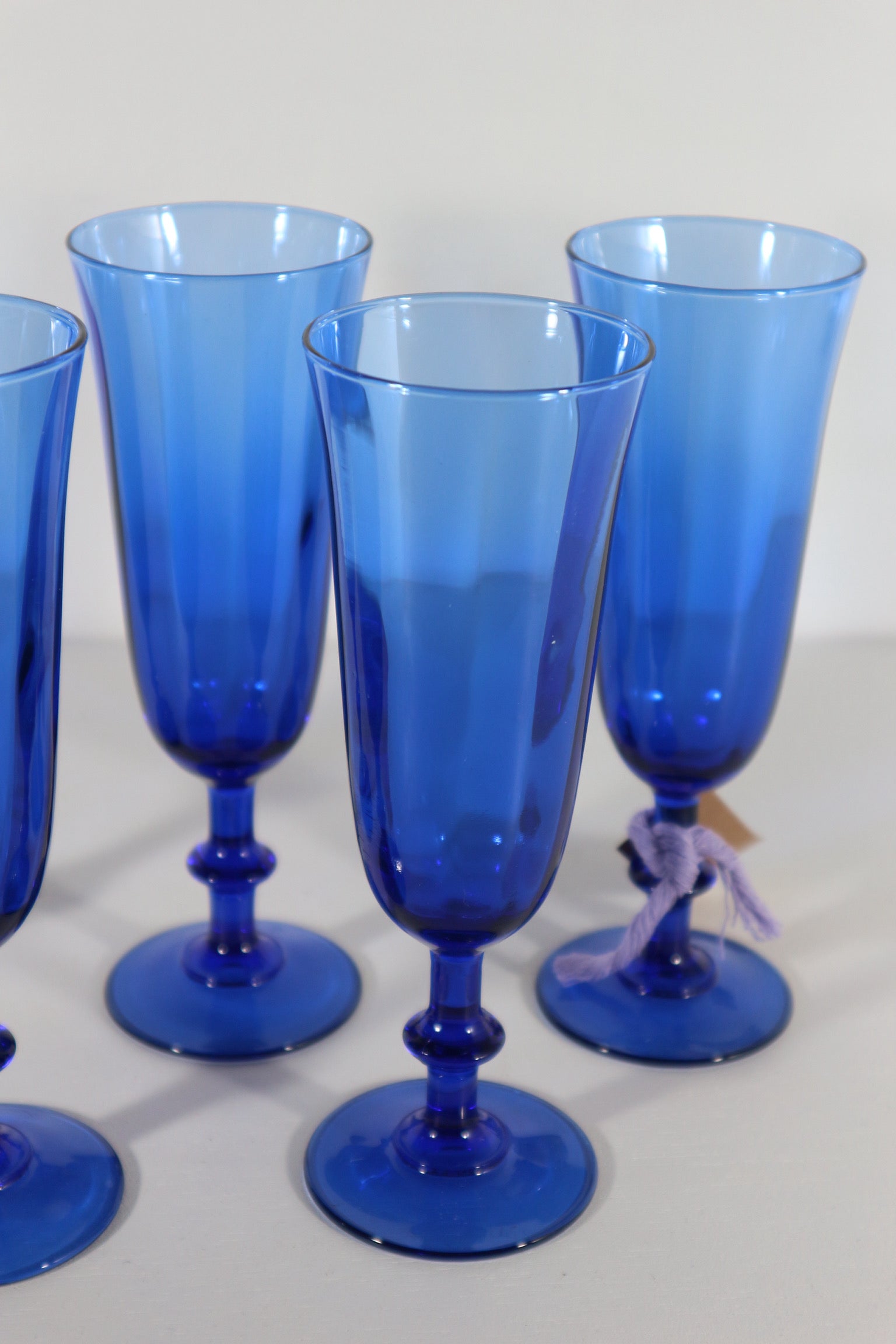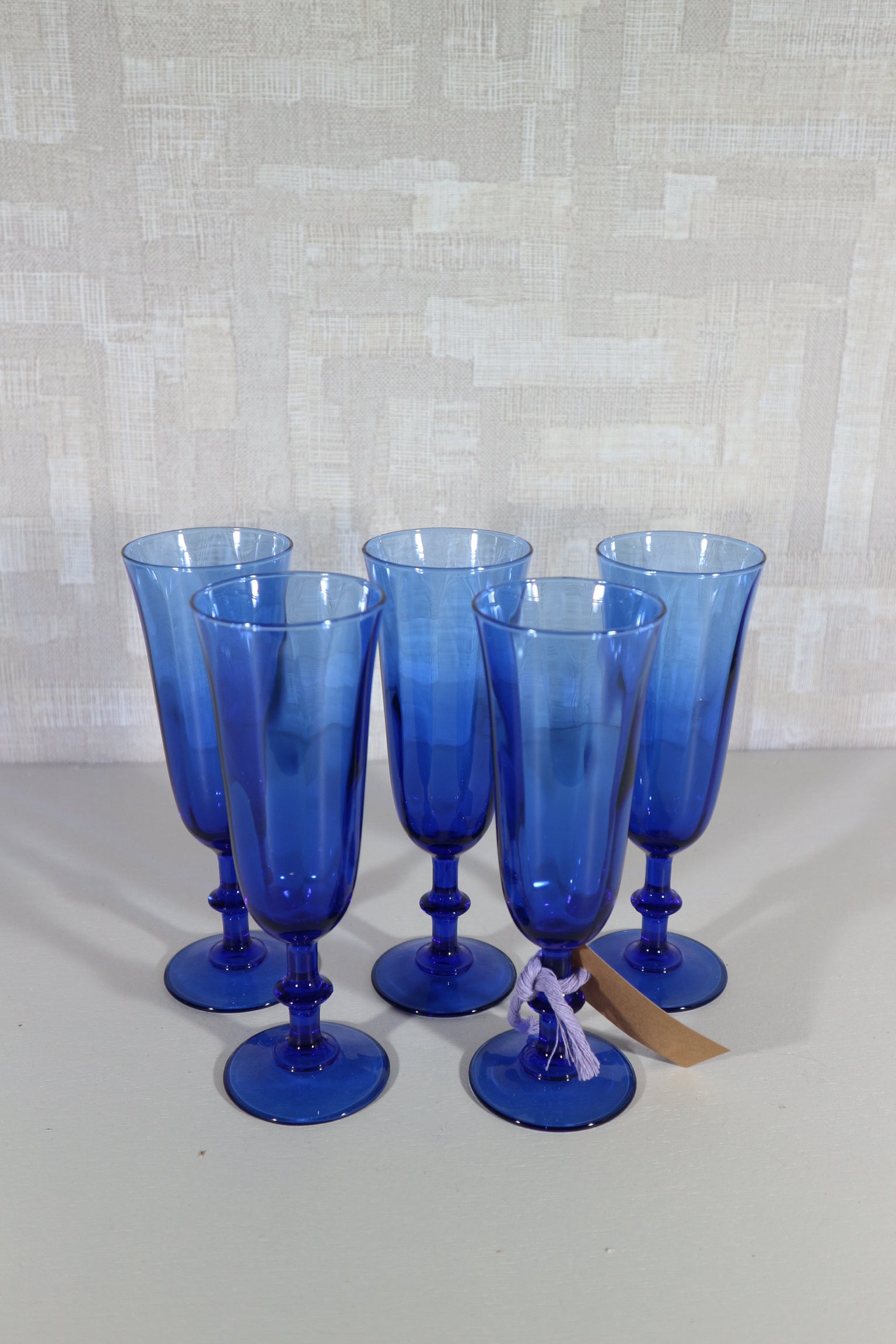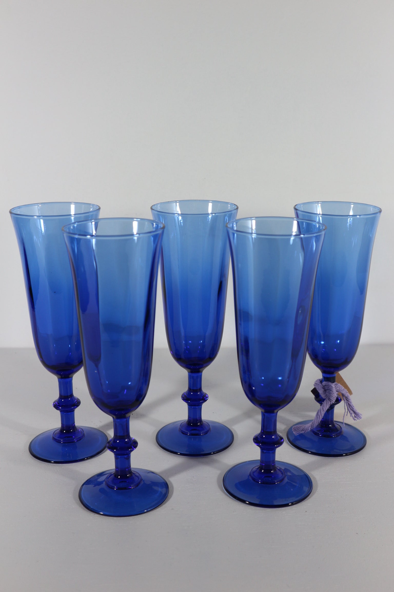Een set van vijf blauwe champagne glazen, van Luminarc France