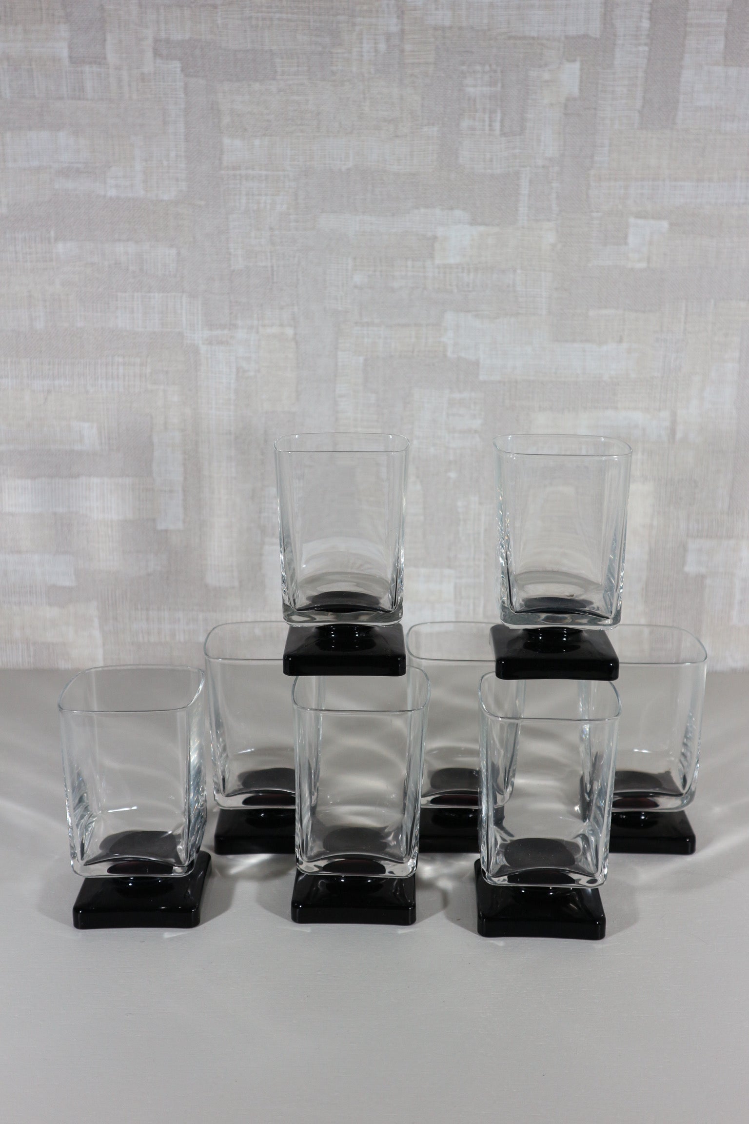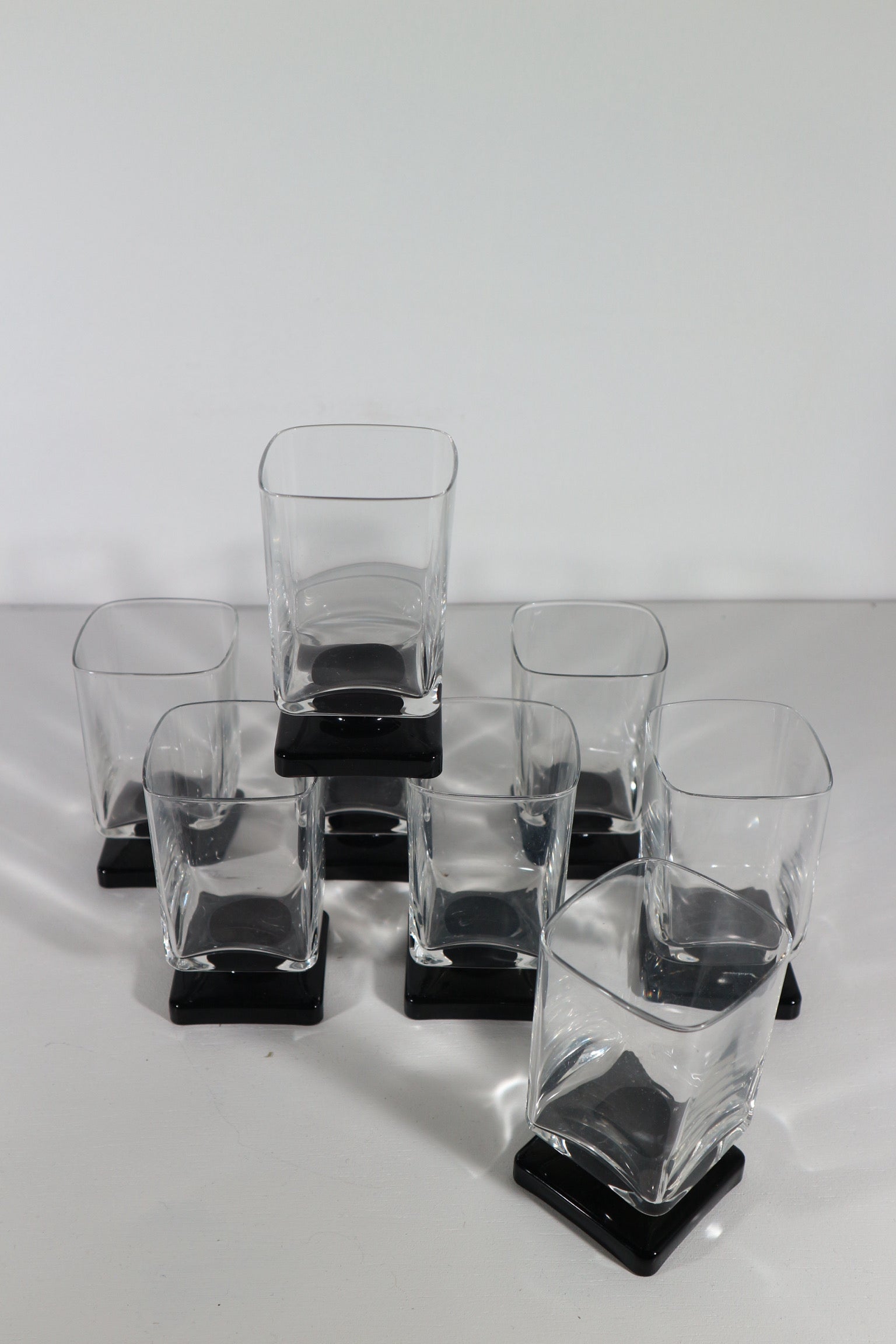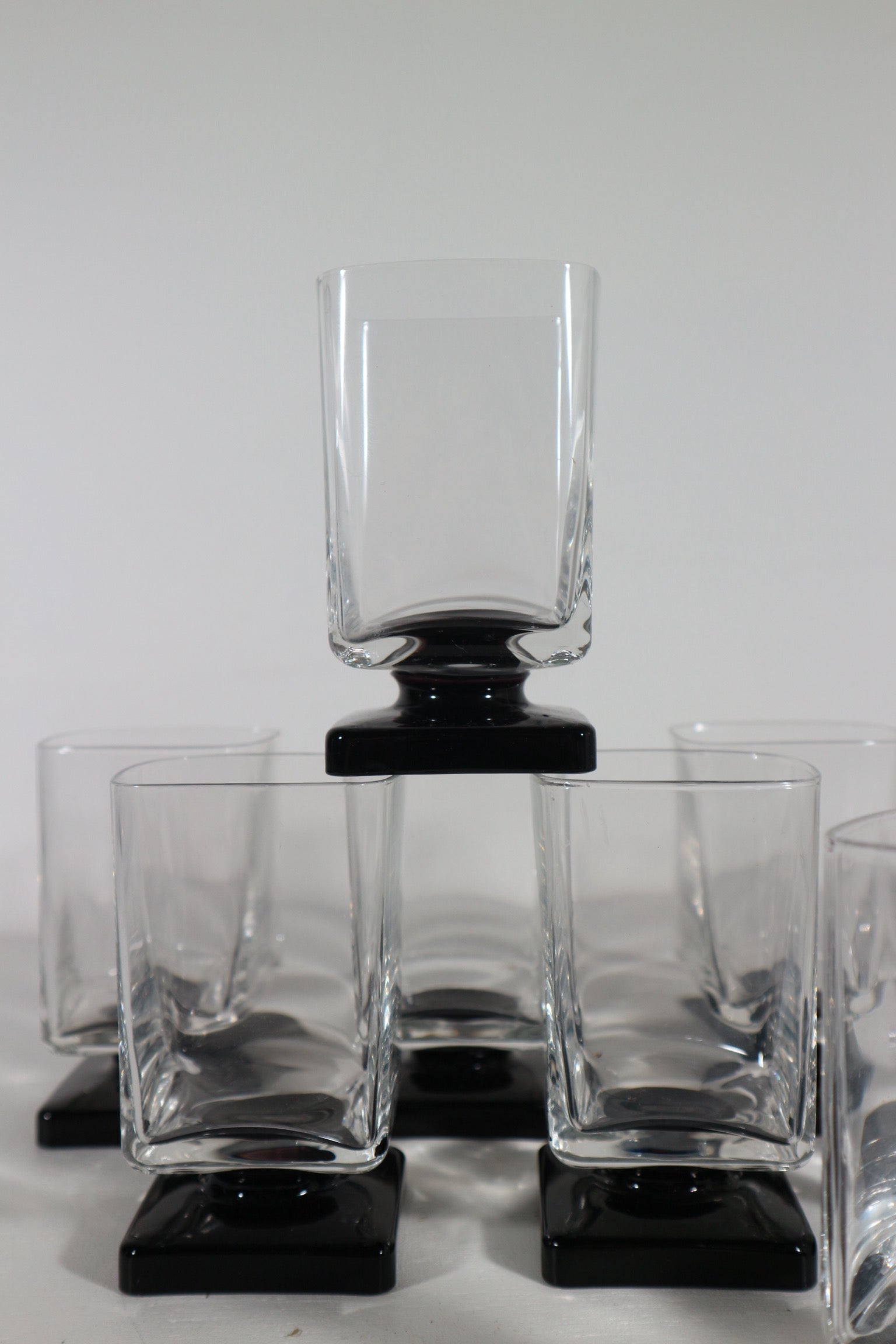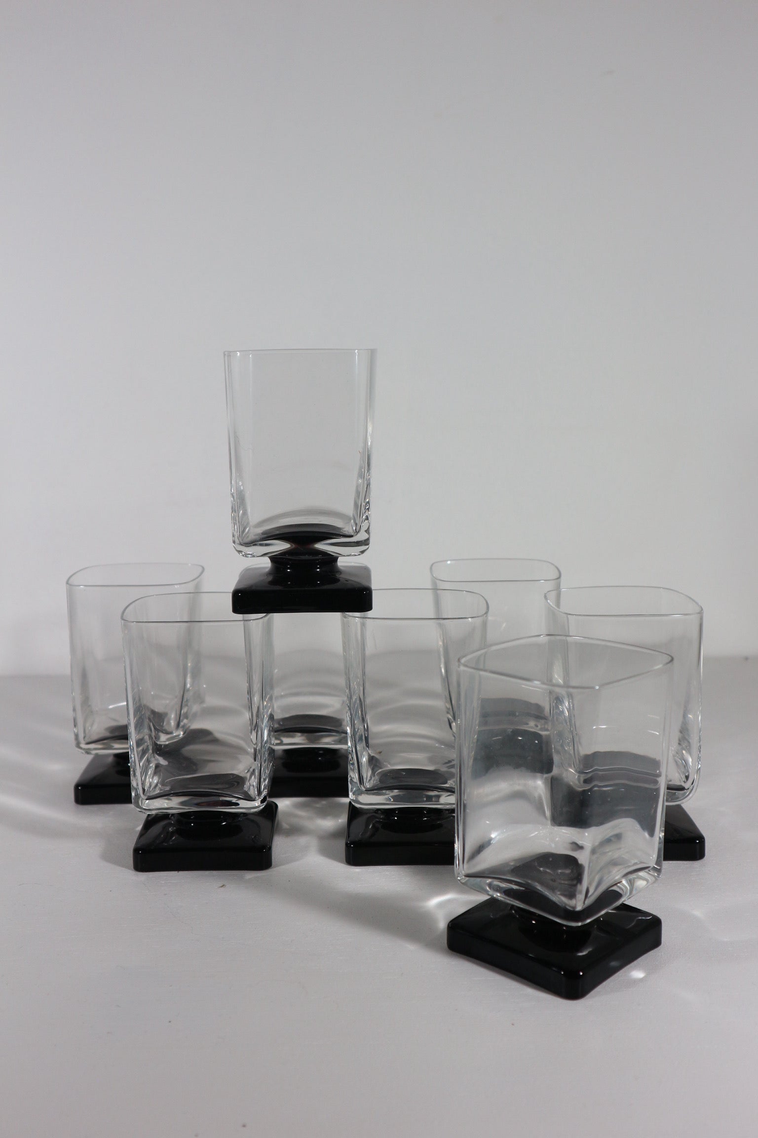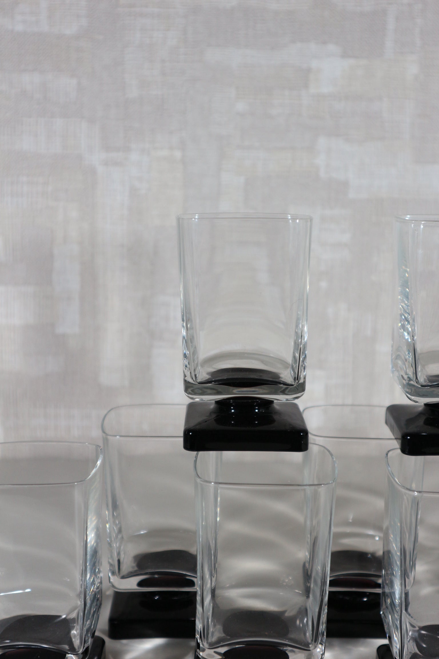 Set van acht wijn glazen. De glazen zijn van het Italiaanse merk Bormioli, de Monet Noir collectie.