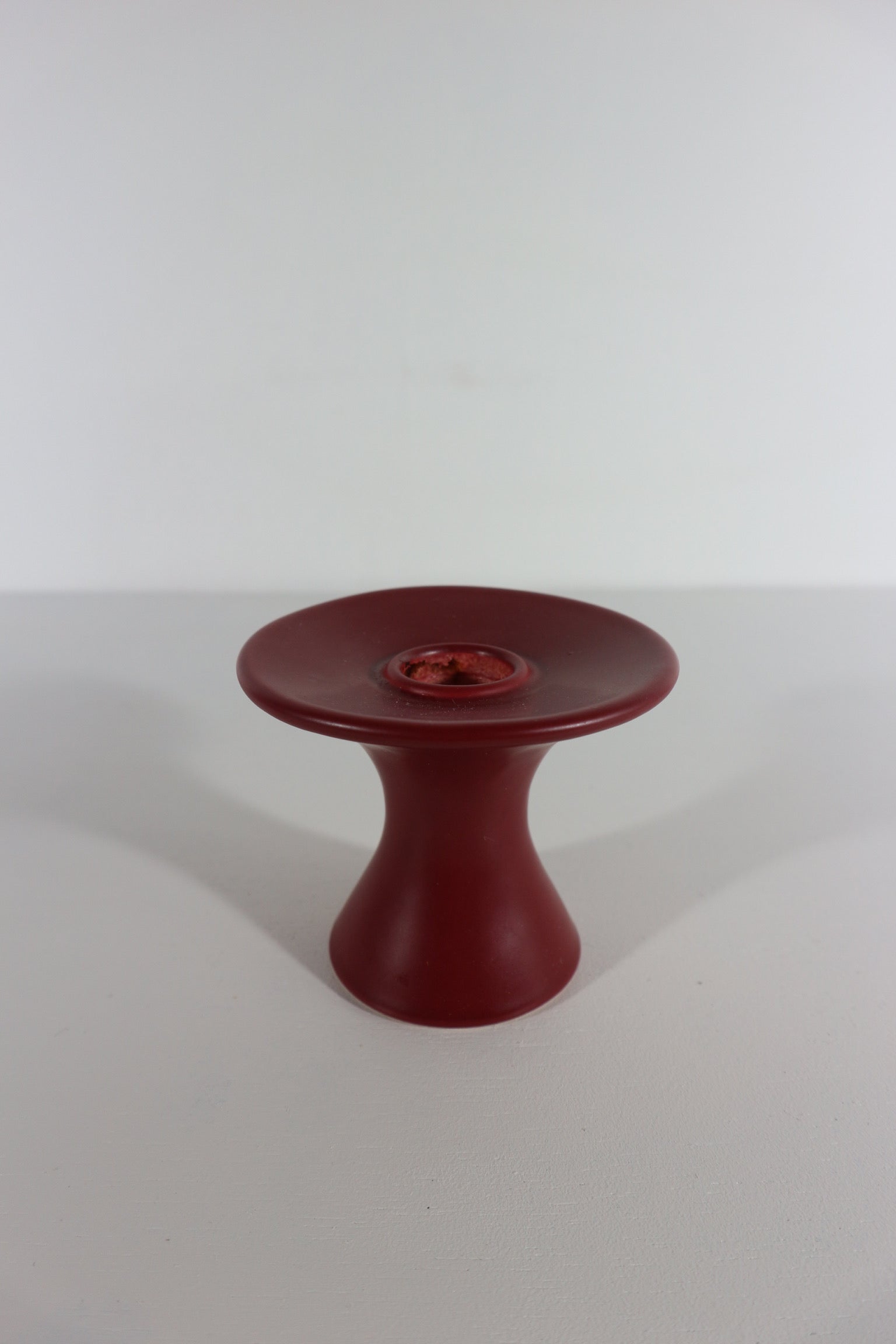 Rode kandelaar van keramiek.