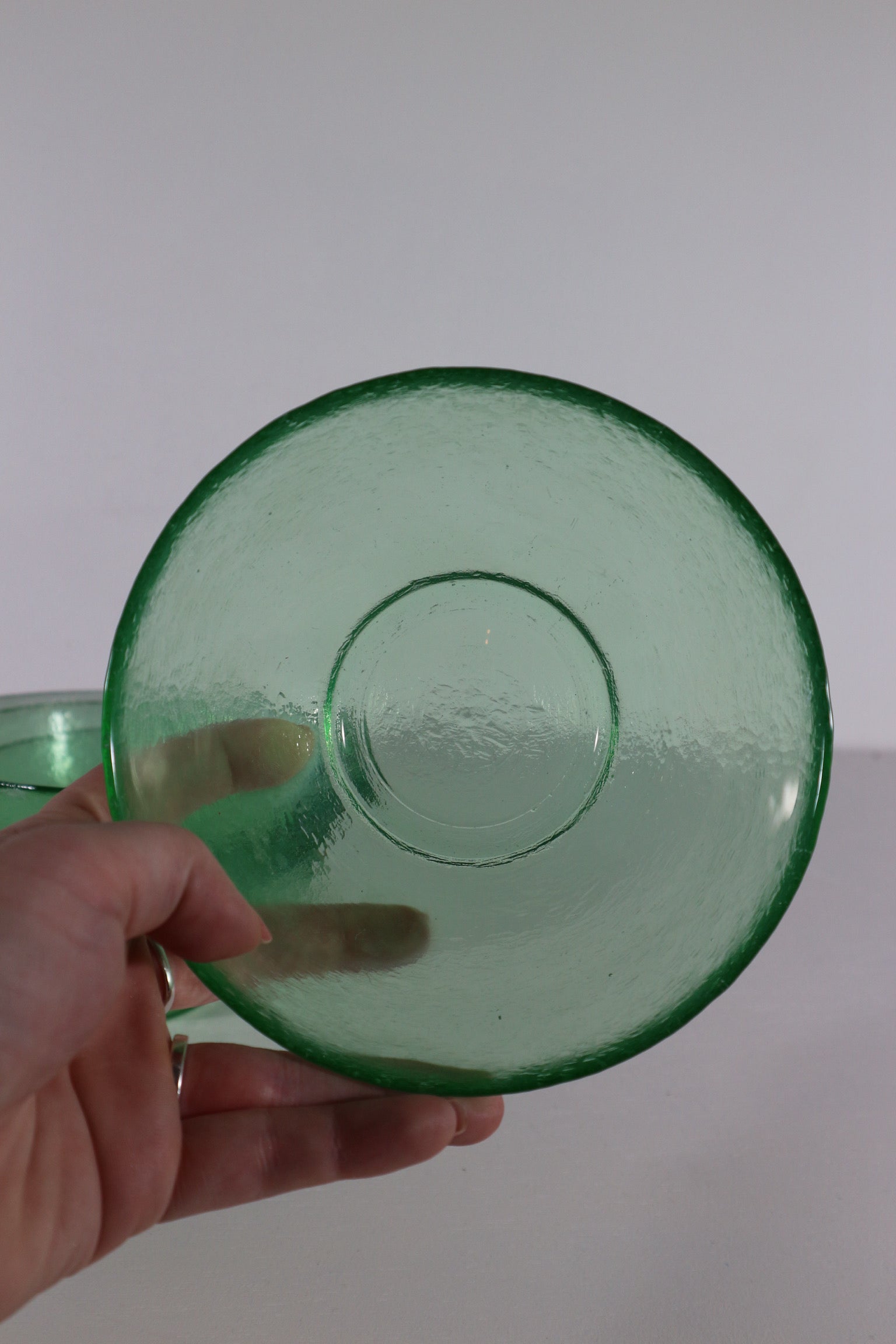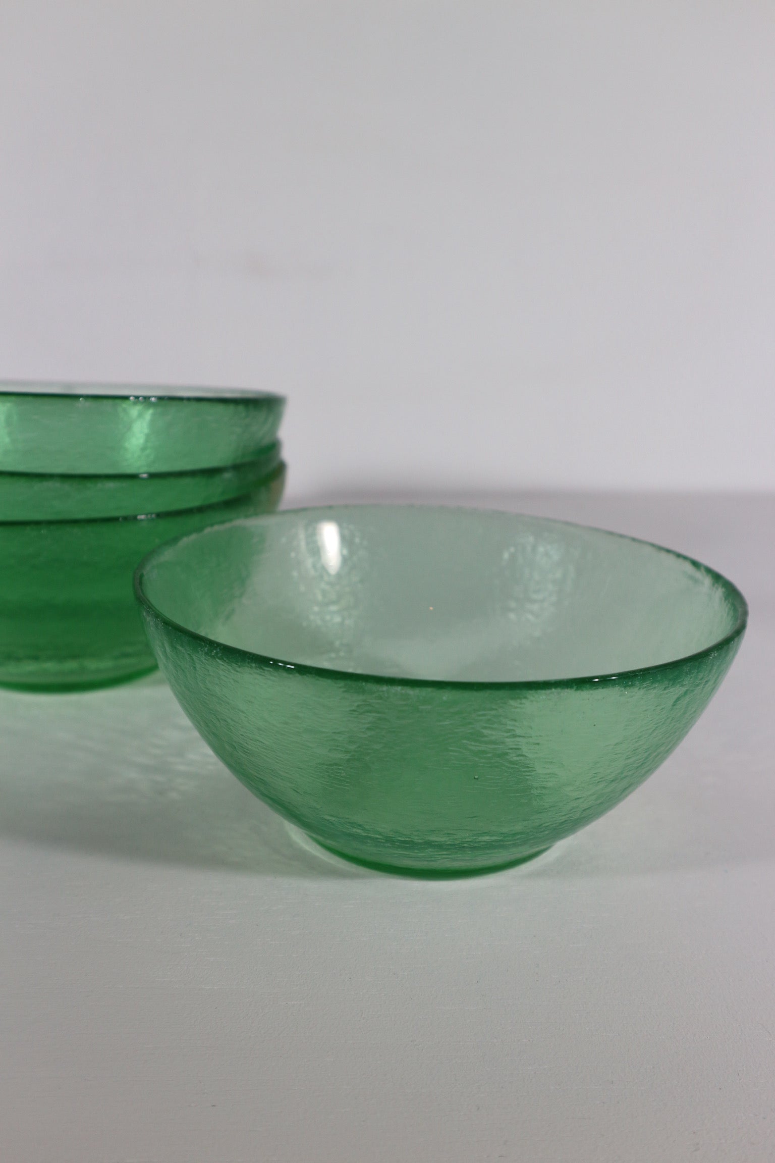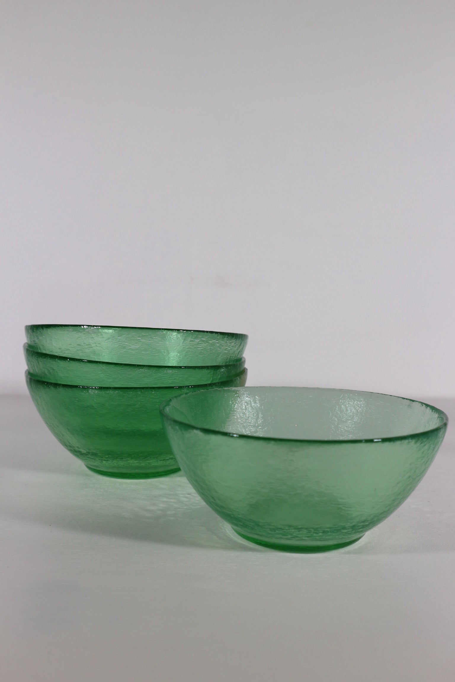 Set van vier glazen groene kommen.