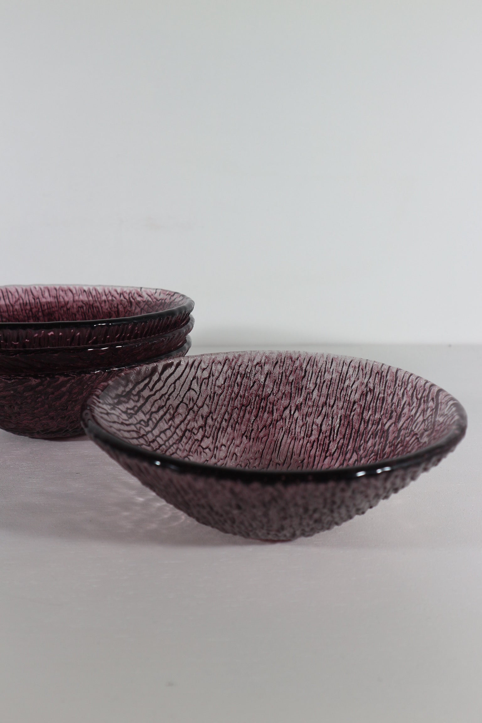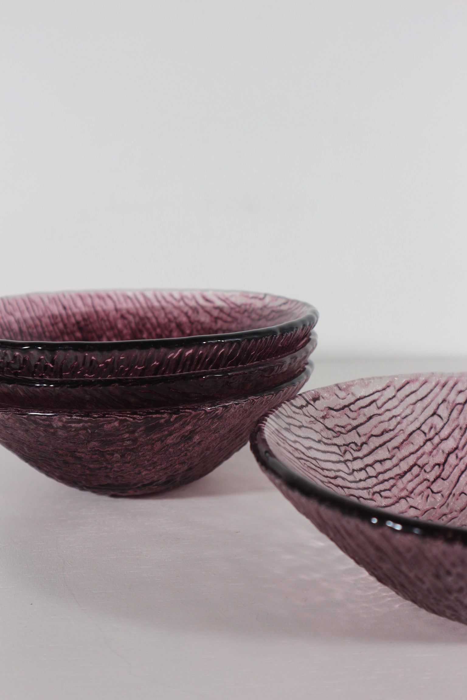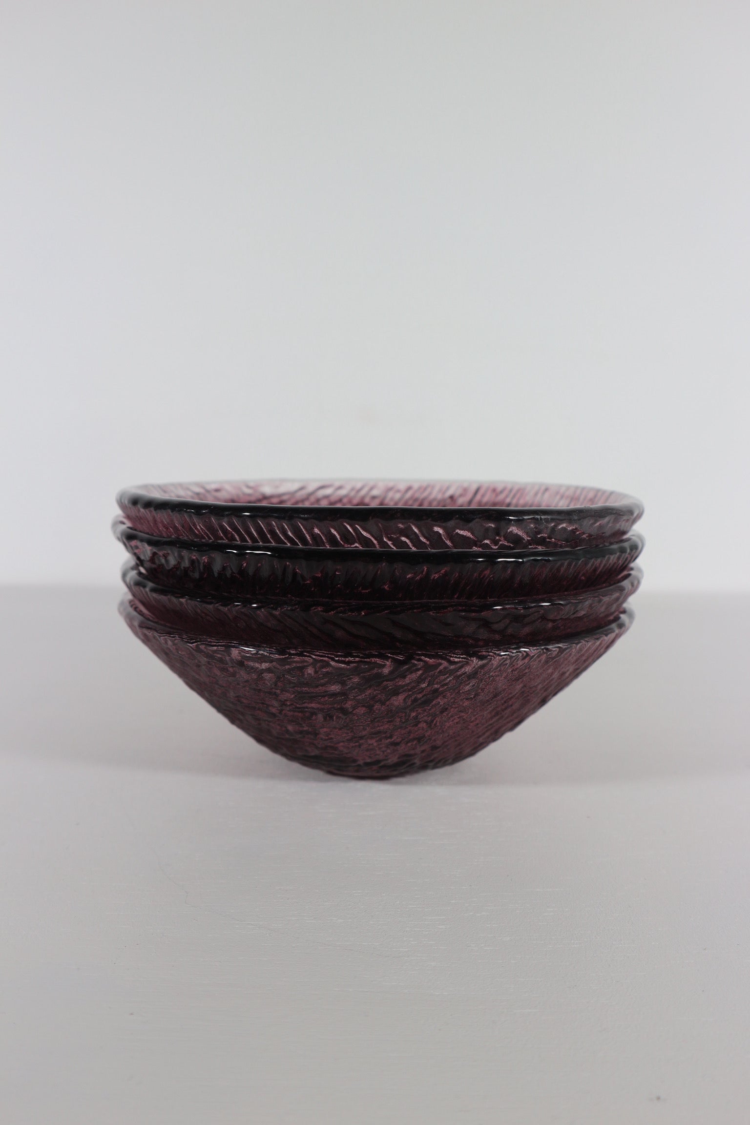 Set van vier paarse glazen kommetjes, zwaar glas. Ingekocht in Italië.