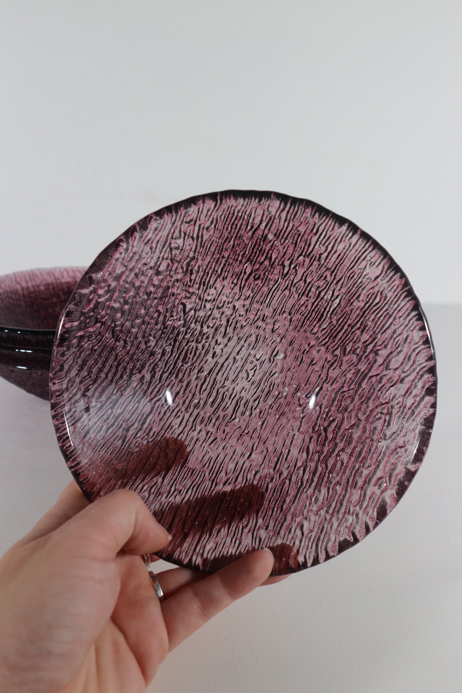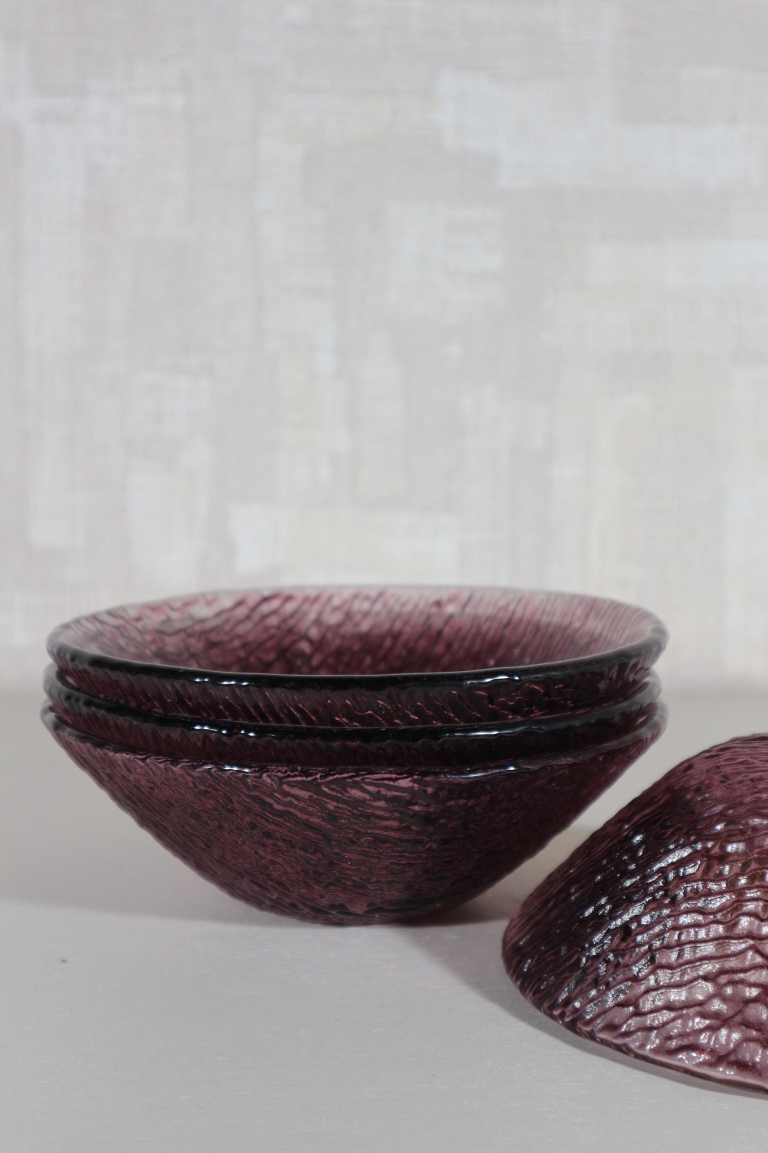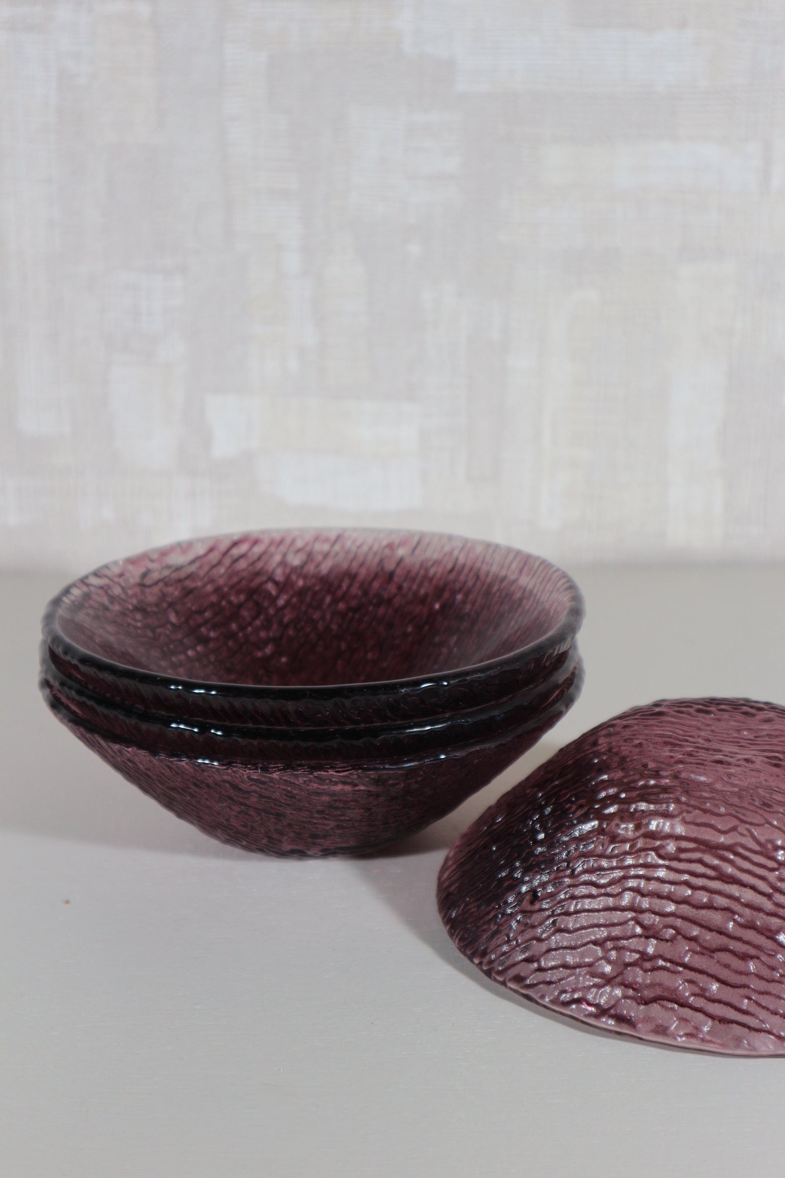 Set van vier paarse glazen kommetjes, zwaar glas. Ingekocht in Italië.