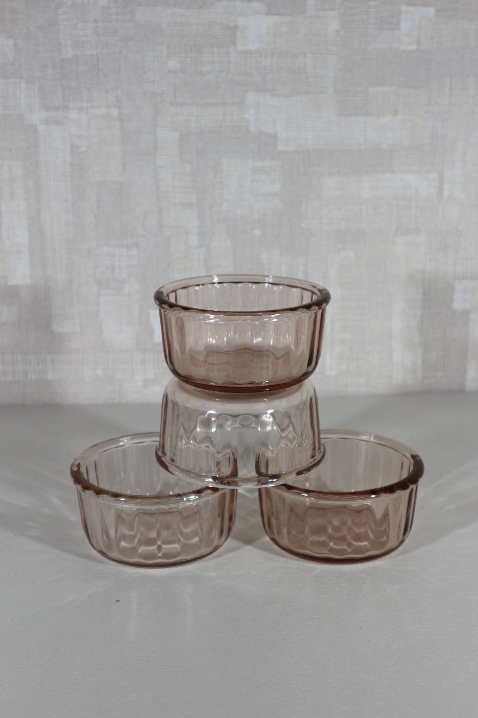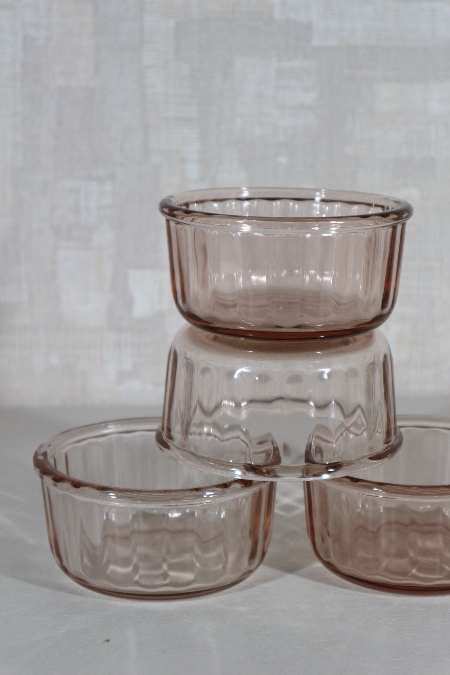 Een set van vier kommetjes van roze glas