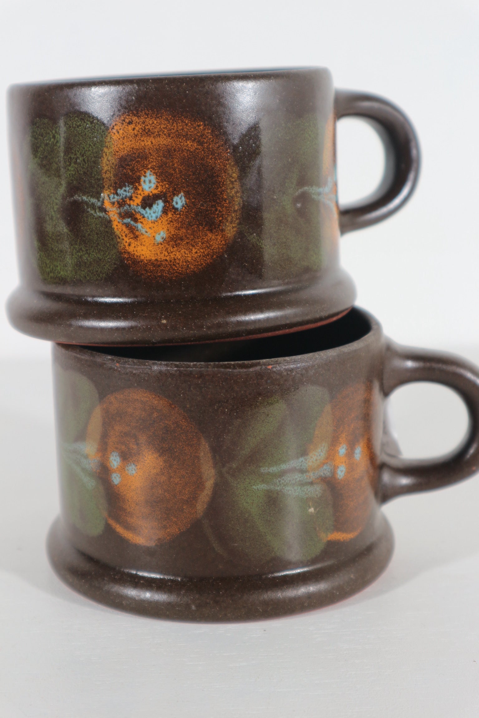 Set van twee soepkommen, gedecoreerd met bloemen.