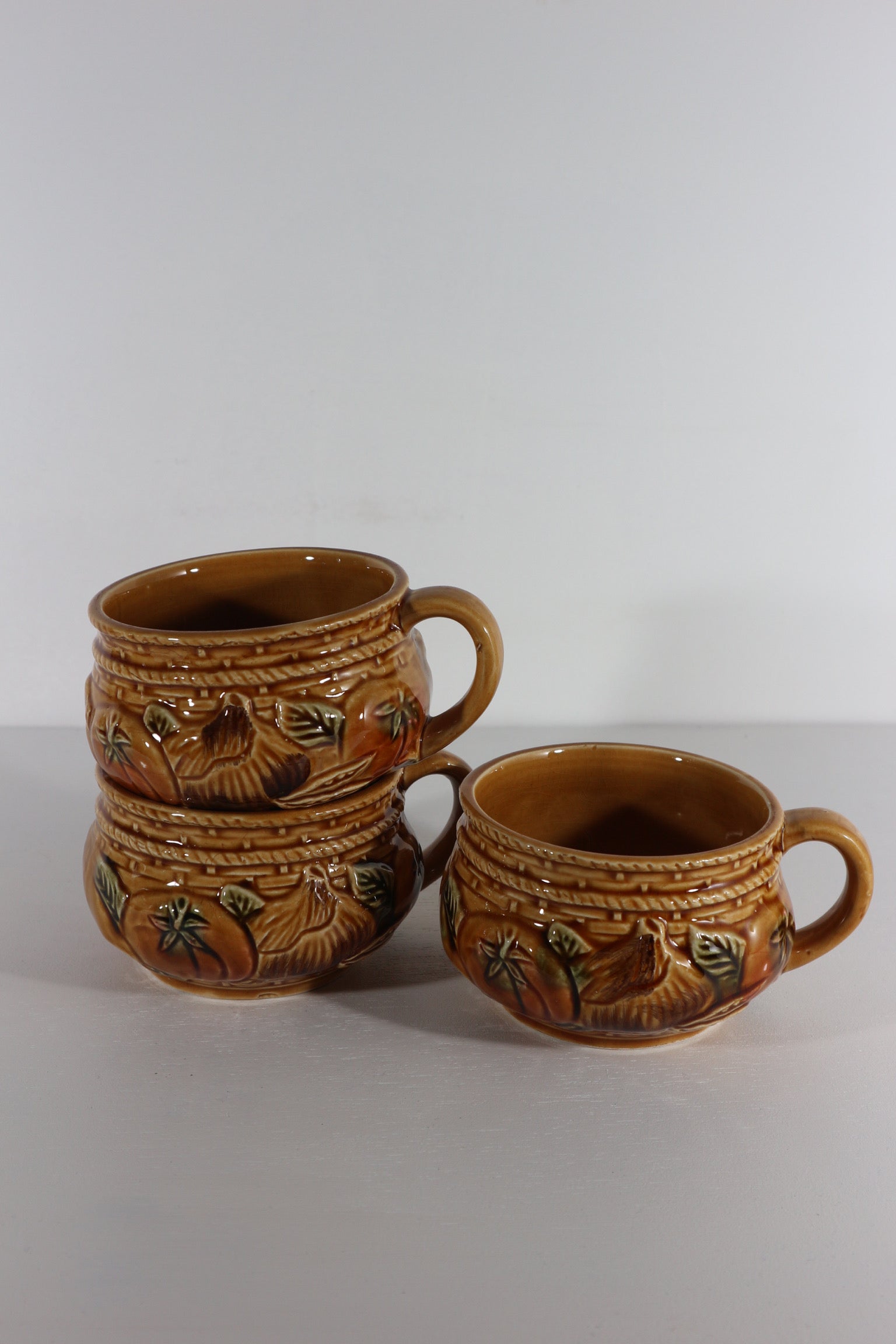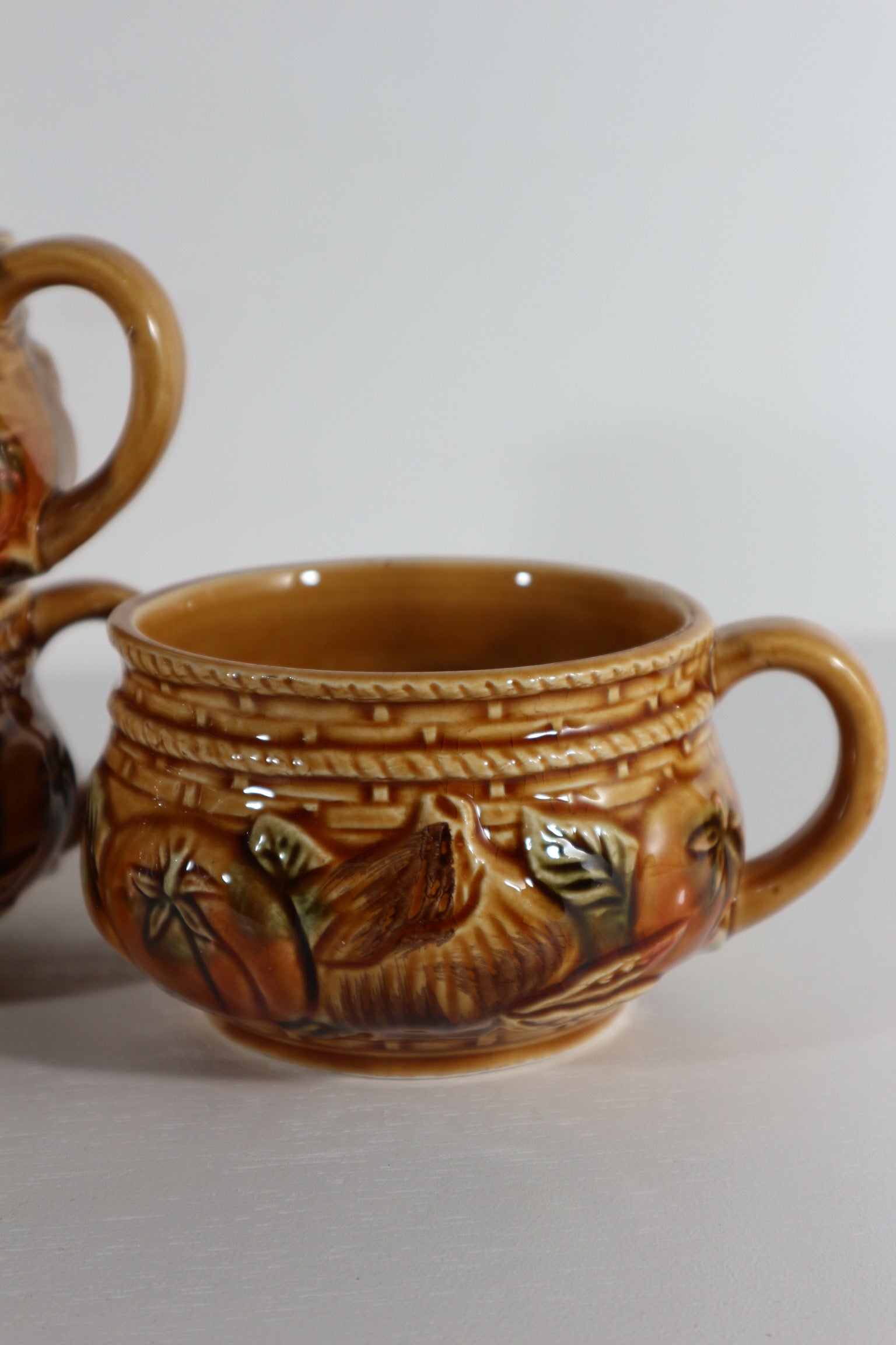 Set van drie Japanse soepkommen. Twee kommen hebben een heel klein chipje aan de onderkant, zie foto’s.
